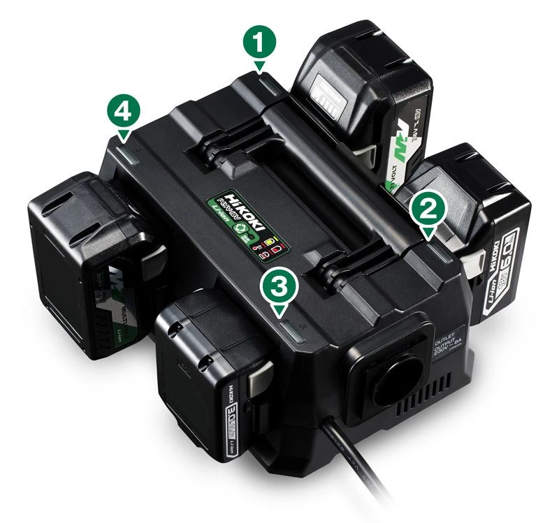 Deze multi lader is ontworpen om tegelijkertijd 4 HiKOKI accu’s op te laden, waardoor je tijd bespaart en altijd een reserve-accu bij de hand hebt. Of je nu met een team werkt of gewoon veel accu’s gebruikt, deze lader zorgt voor een efficiënte en snelle oplaadtijd. Hierdoor kun je continu doorwerken zonder vertraging.